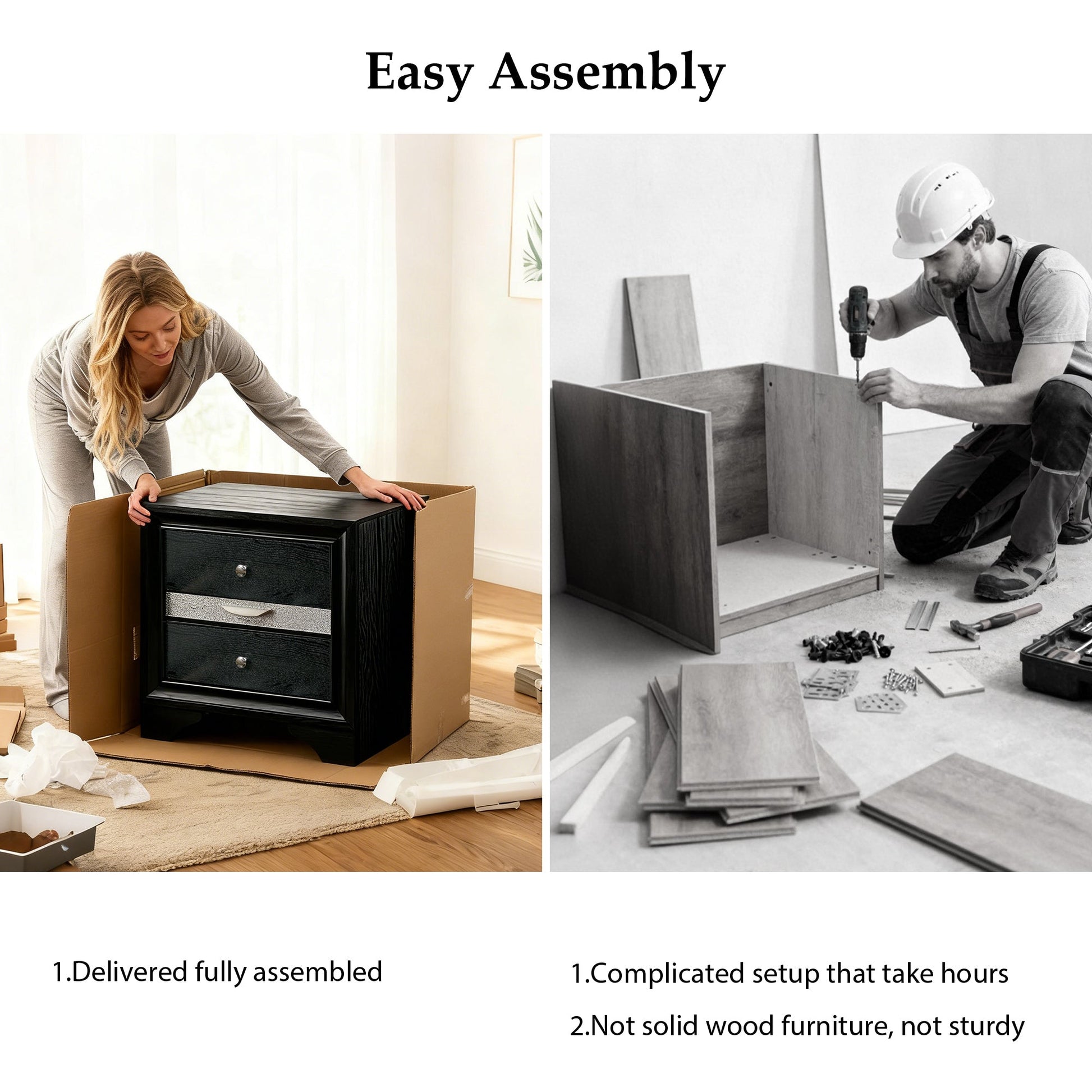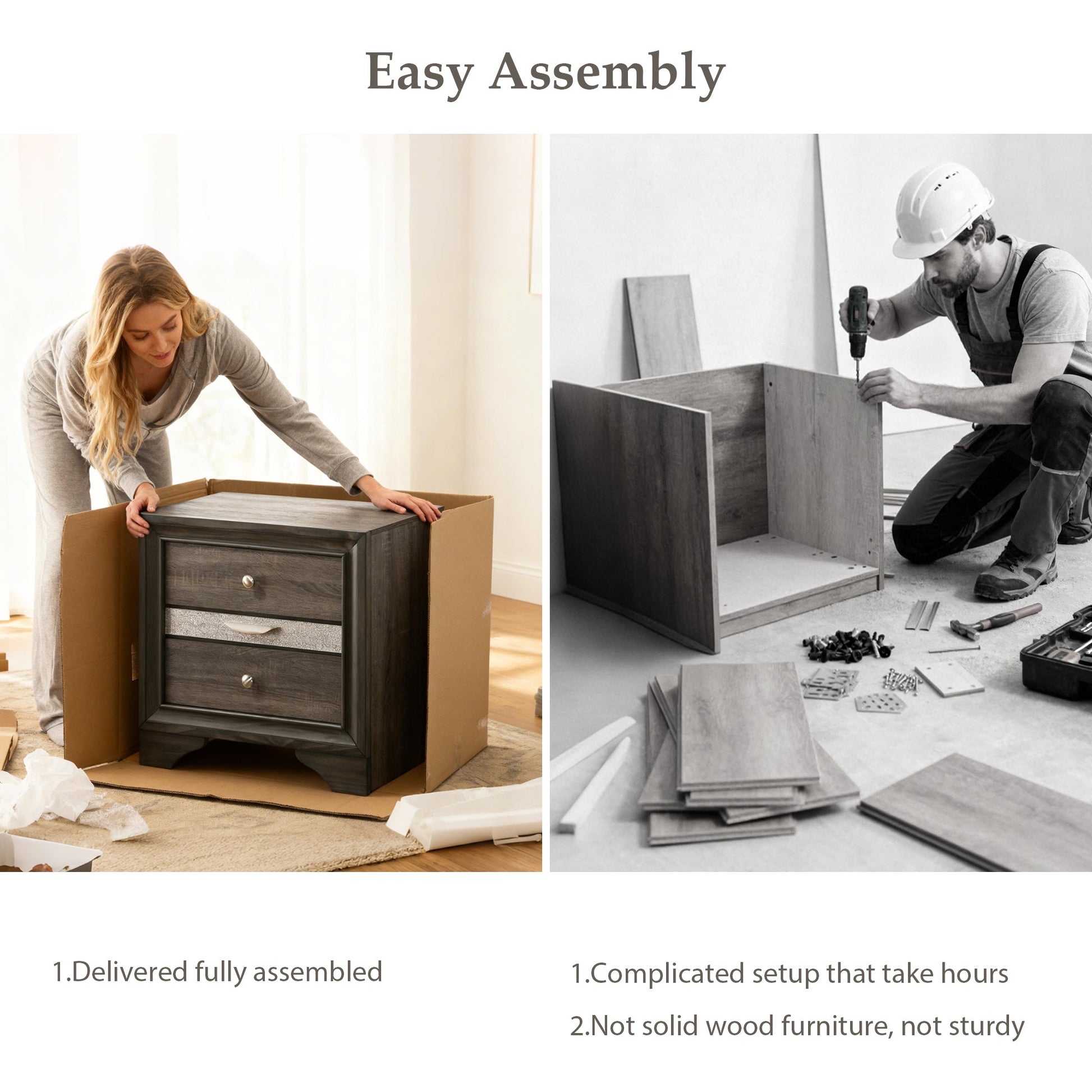 Fully Assembled Contemporary Solid Wood Nightstand with 3 Drawers